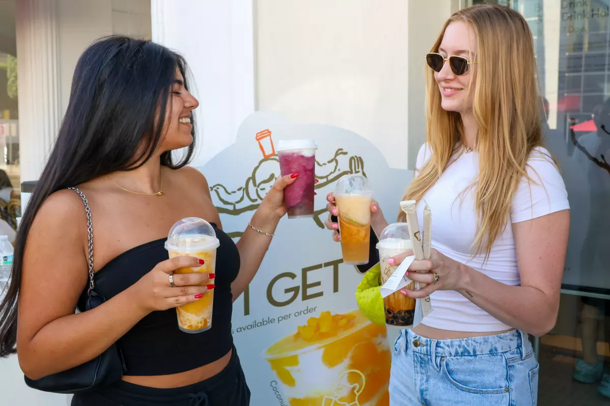 For the Los Angeles opening, Heytea introduced a Beverly Hills store-exclusive drink called the California Sunset, a slushie made with green jasmine tea and infused with Sunkist orange juice and pulp.